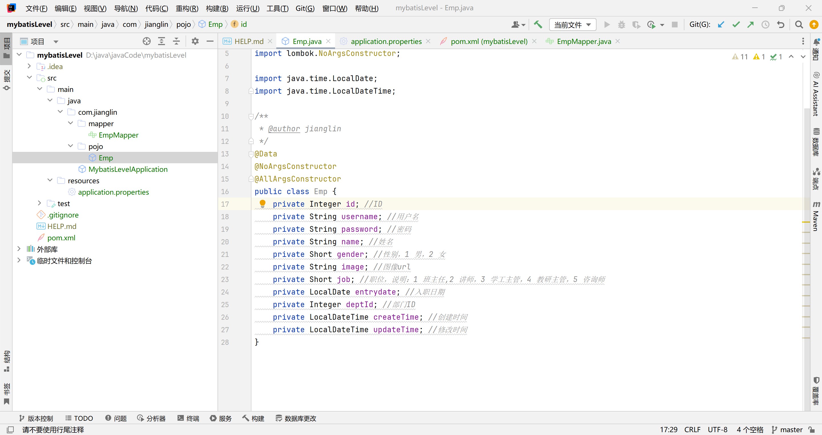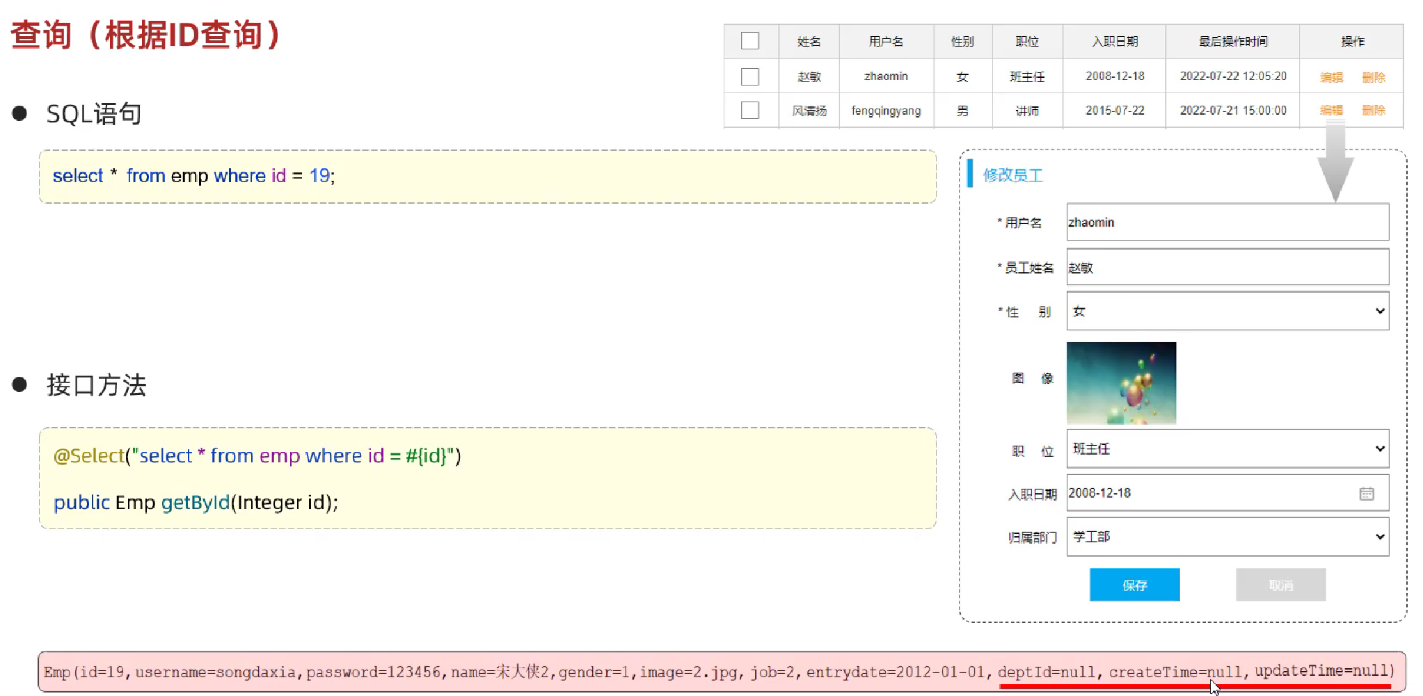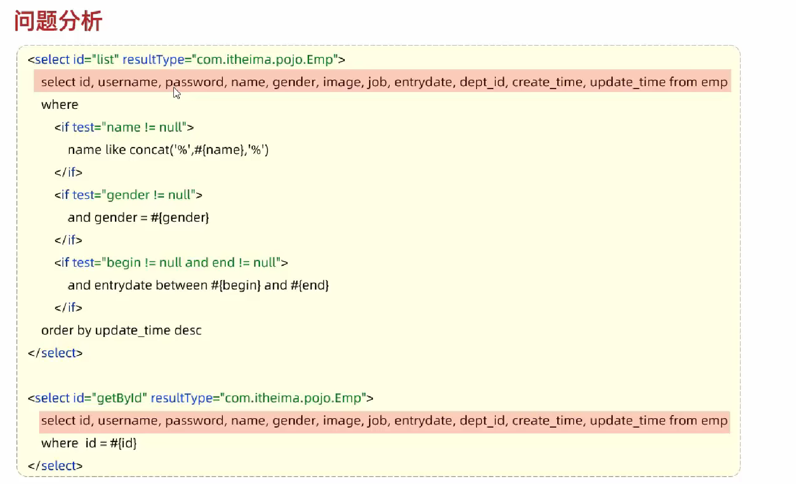 select id, username, password, name, gender, image, job, entrydate, dept_id, create_time, update_time from emp