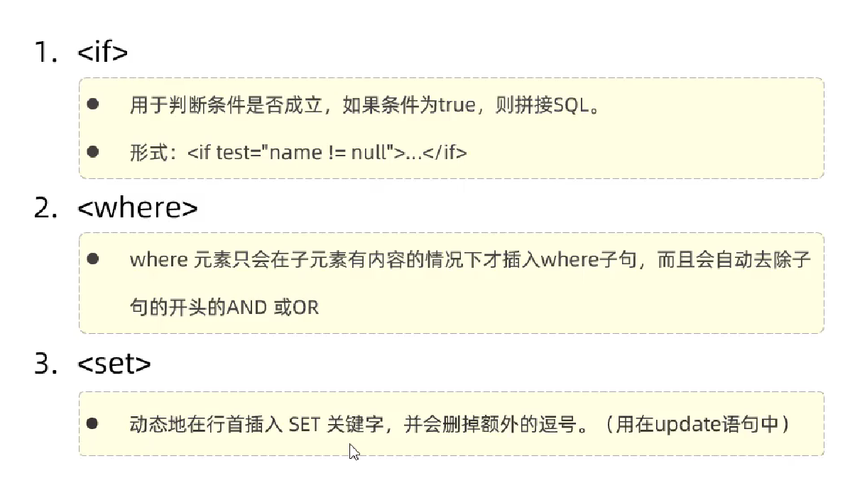 包裹查询条件子标签(如 <if>),判断内部条件是否成立。