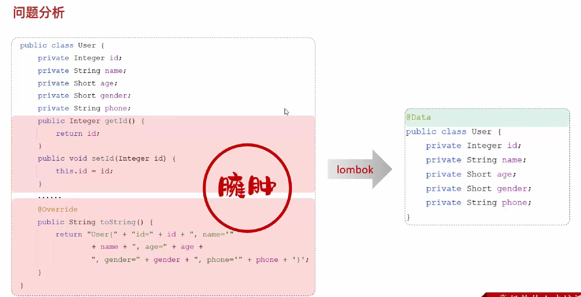 return "User{id = " + id + ", name = " + name + ", age = " + age + ", gender = " + gender + ", phone = " + phone + "}";