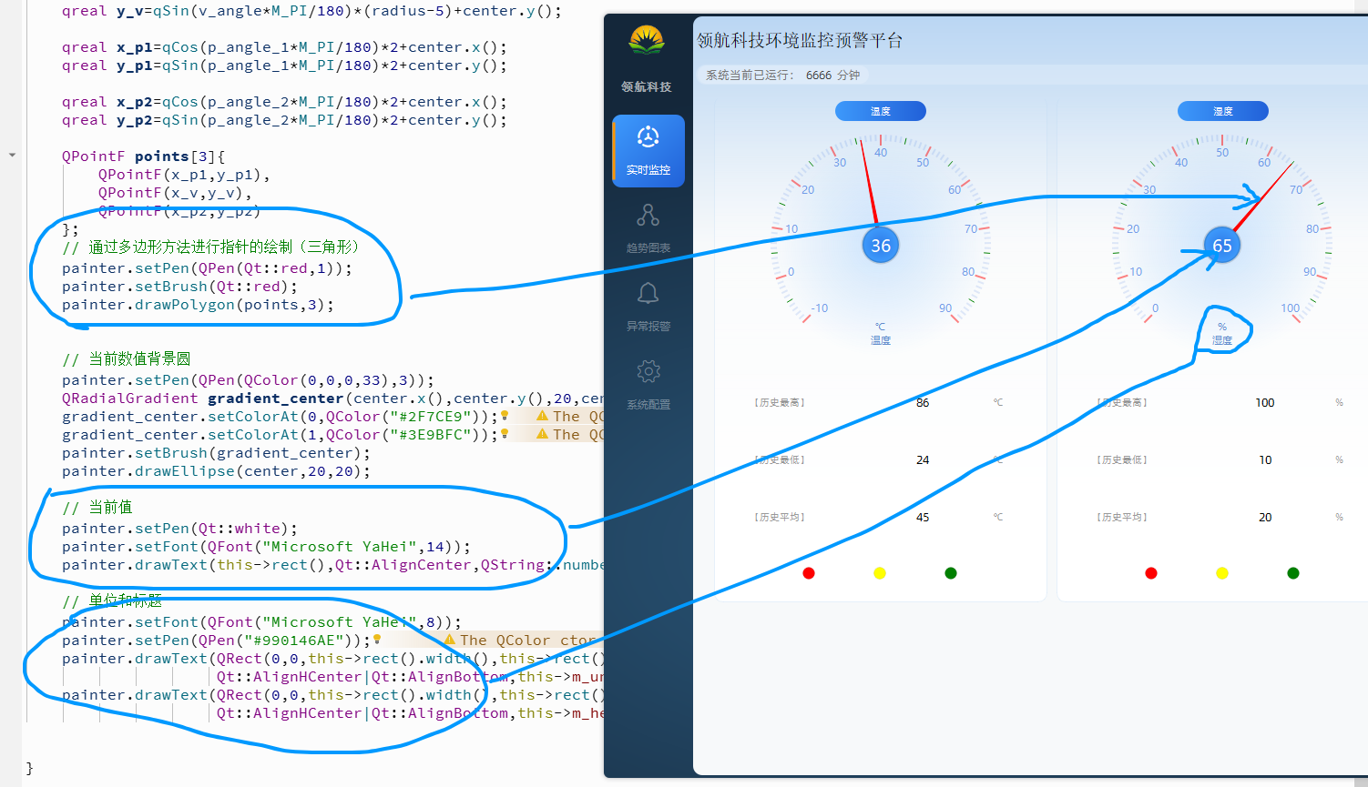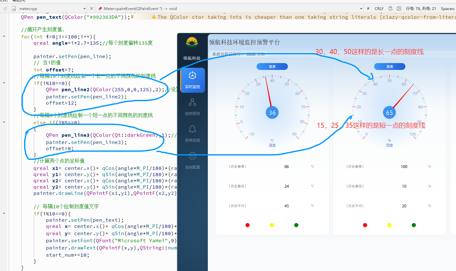 Qt中绘制湿度盘的方法