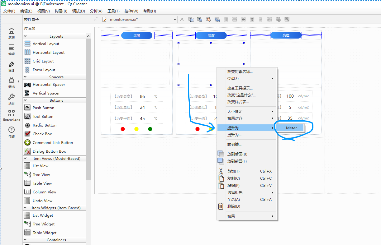 - 可视化设计:在Qt Designer中直接拖放基础控件,并通过提升机制替换为自定义类。