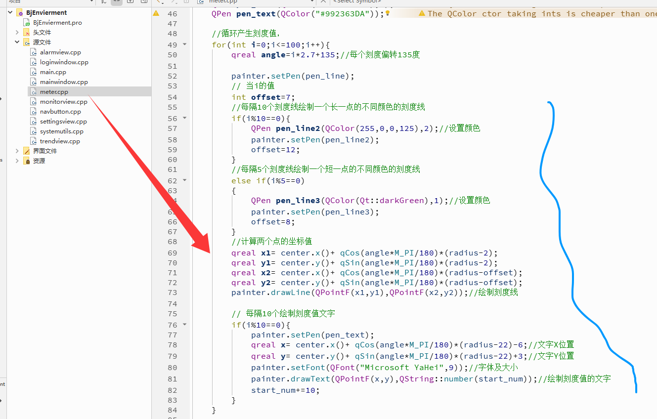 painter.drawLine(QPointF(x1,y1),QPointF(x2,y2));//绘制刻度线