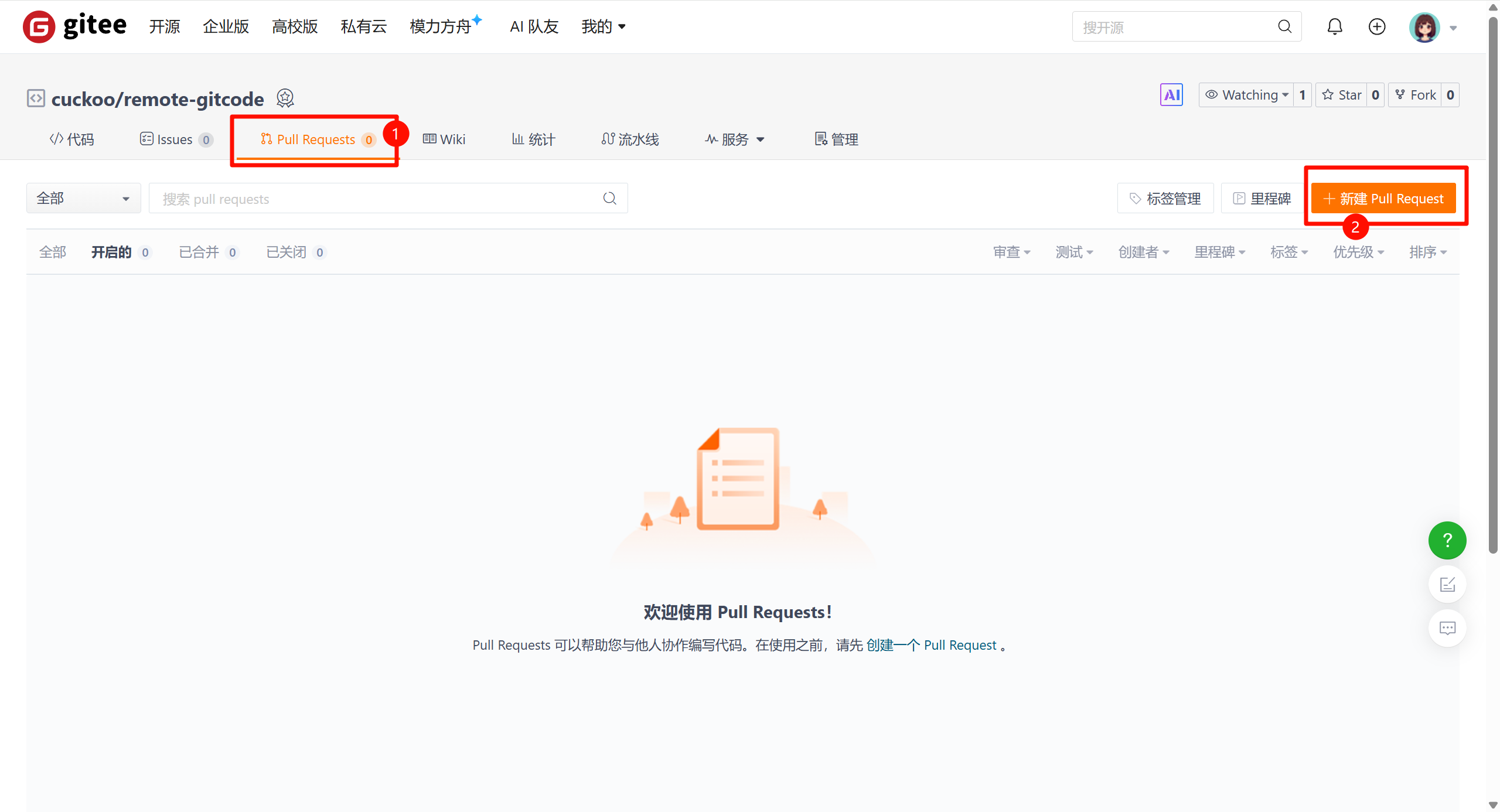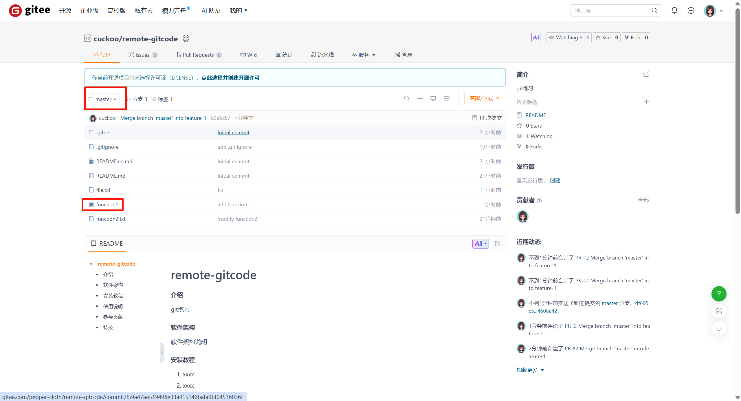 remote: Create a pull request for 'feature-1' on Gitee by visiting: