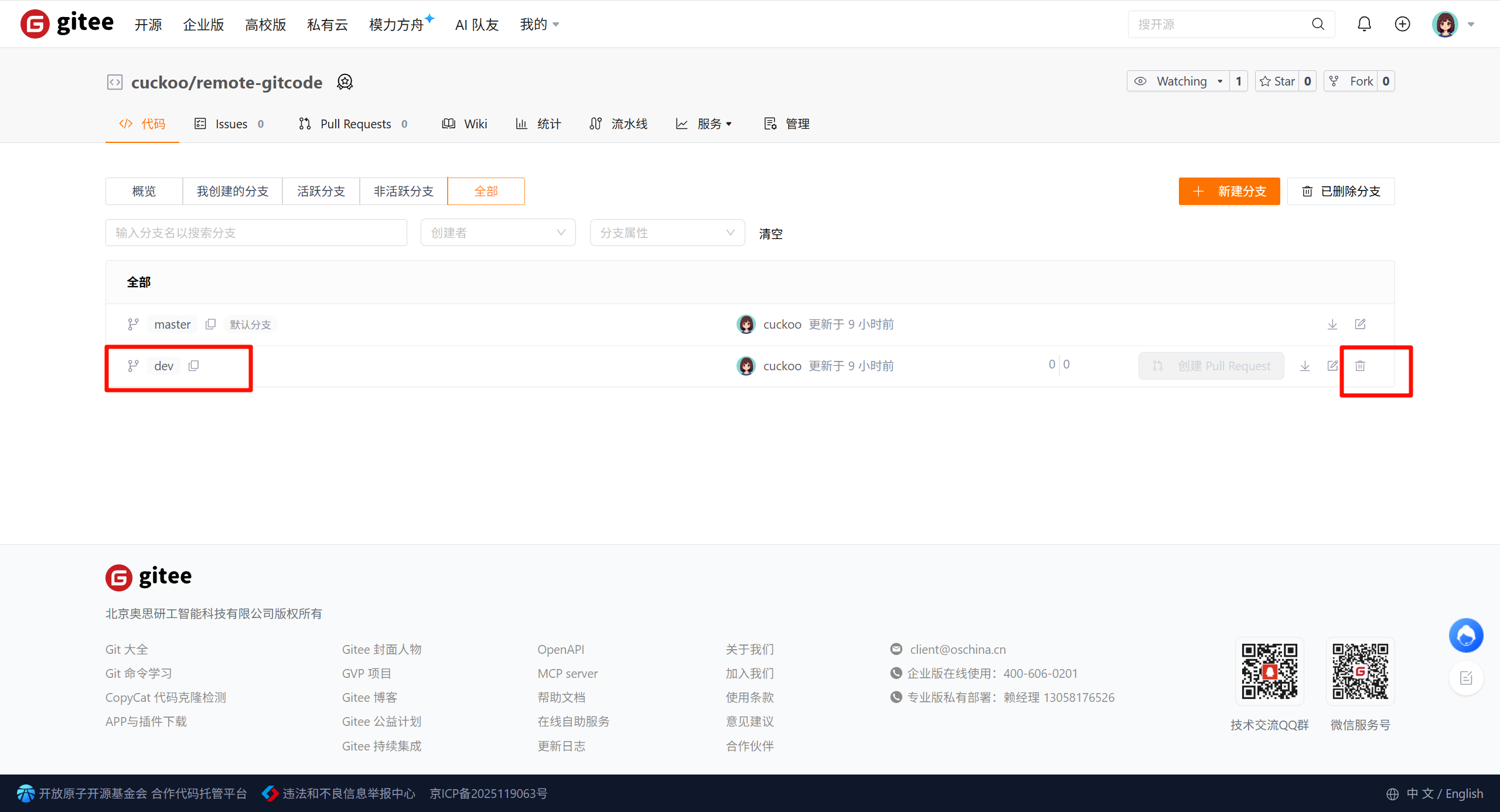 root@VM-0-3-ubuntu:~/remote-gitcode# git branch -a