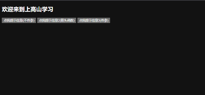 <button @click="showInfo3(66, $event)">点我提示信息3(传参)</button> <!-- 给函数中传一个参数 -->