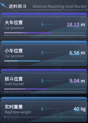 **■行车吊:**支持抓斗精准升降与水平移动,可切换手动控制与真实数据驱动作业模式,兼顾功能演示与真实作业展示需求。