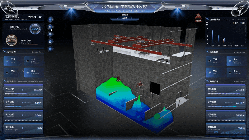 安全层面,通过 VR 远程操作规避人工直接接触危废场景 ,结合虚拟围栏与故障预警系统,降低设备碰撞、物料泄漏等风险,提升安全防护水平;效率层面,依托实时数据监控与自动化动画功能,减少人工巡检工作量,缩短设备故障响应时间,提升作业调度效率,实现运维全流程高效运转。HT 一体化监控方式为固废处理行业树立新标杆,推动行业运维转型并为同类设备数字化升级提供可复制经验。