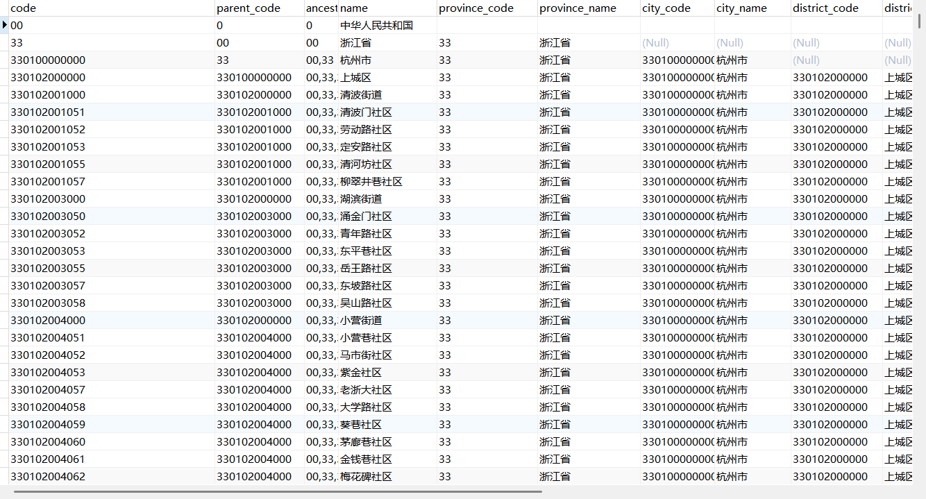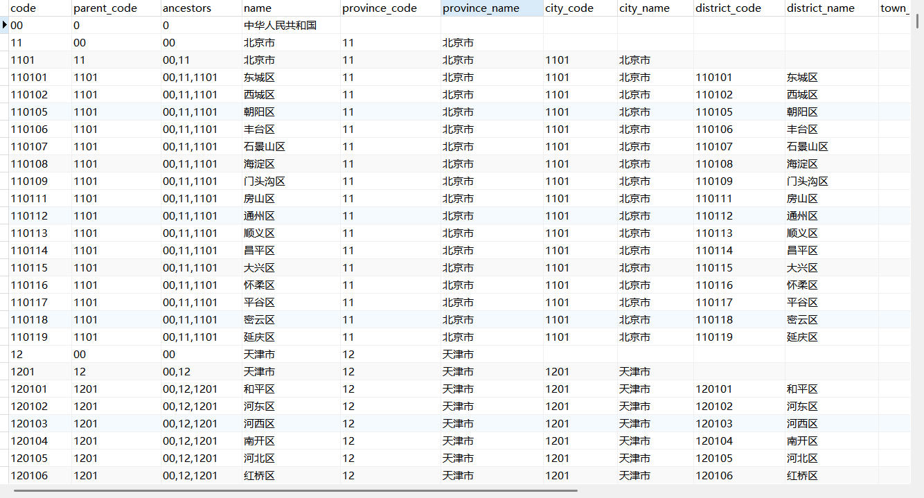 ) ENGINE=InnoDB DEFAULT CHARSET=utf8mb4 COMMENT='行政区划表';