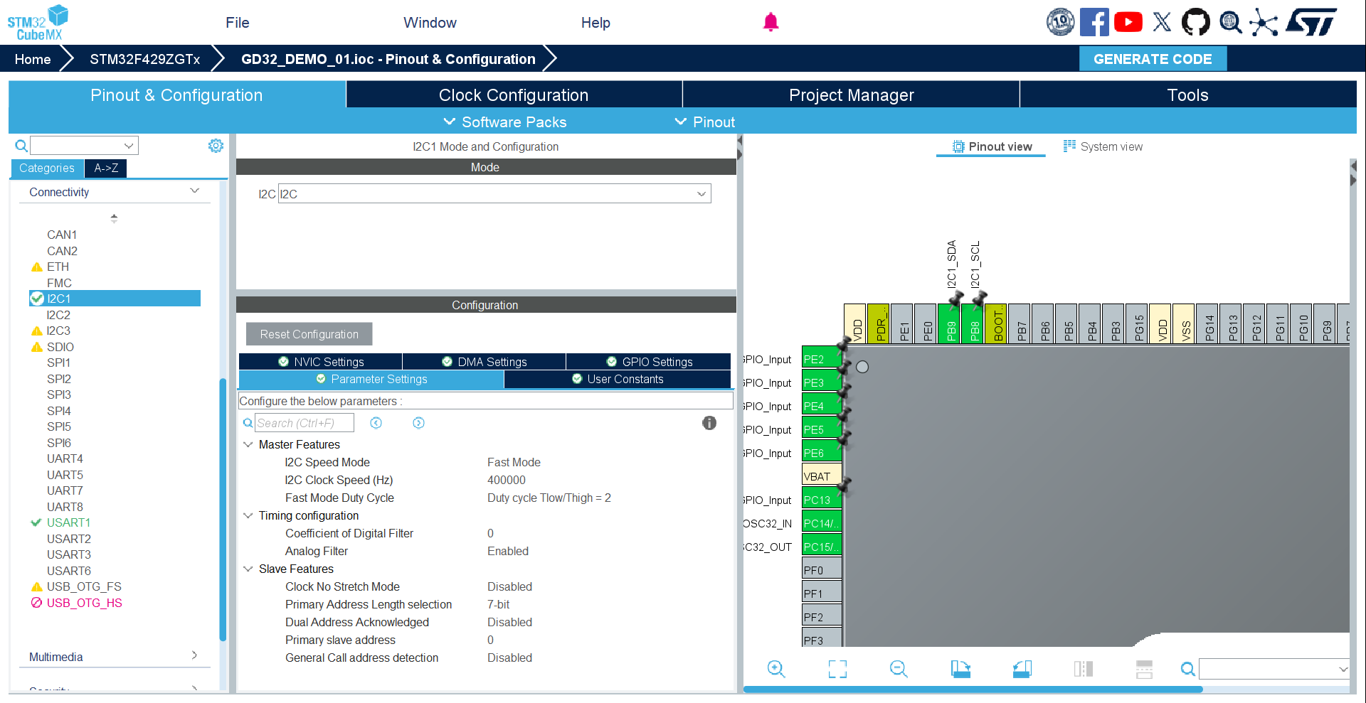 I²C网络中的设备分为主设备和从设备。主设备负责产生时钟信号、启动通信、寻址从设备和控制数据流向。从设备则响应主设备的命令,根据要求发送或接收数据。一个I²C总线可以有多个主设备和多个从设备。
