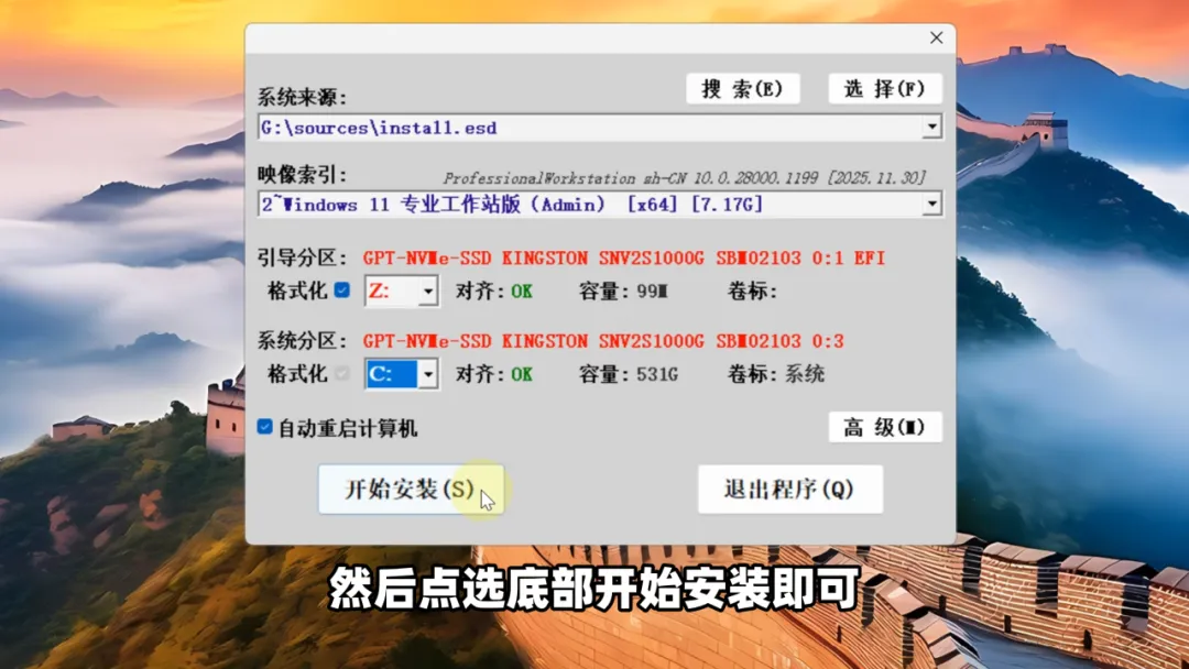 然后,点选底部开始安装即可: