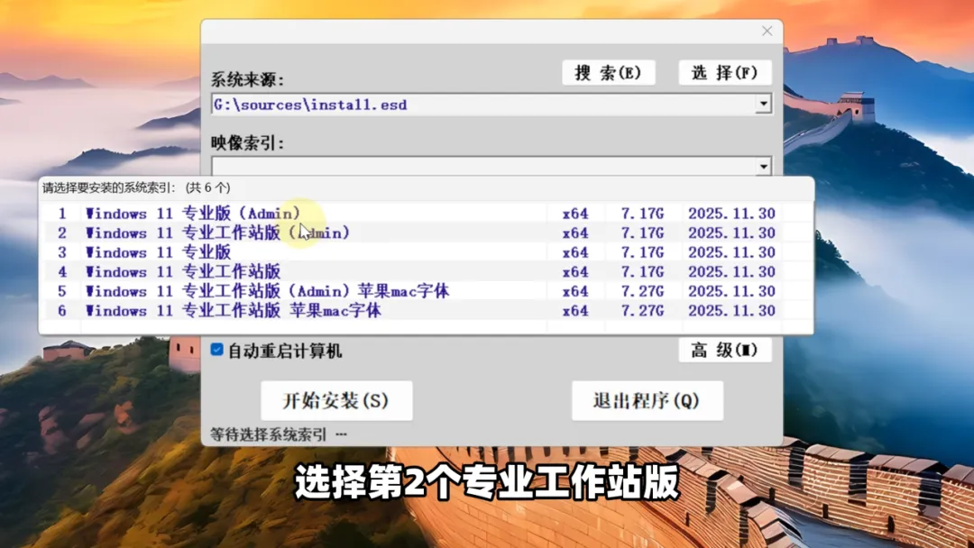 在弹出的窗口内,选择第二个 :++专业工作站版++ ,带管理员权限的。