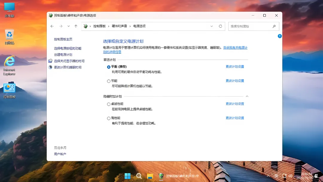 电源选项计划,开启所有模式: