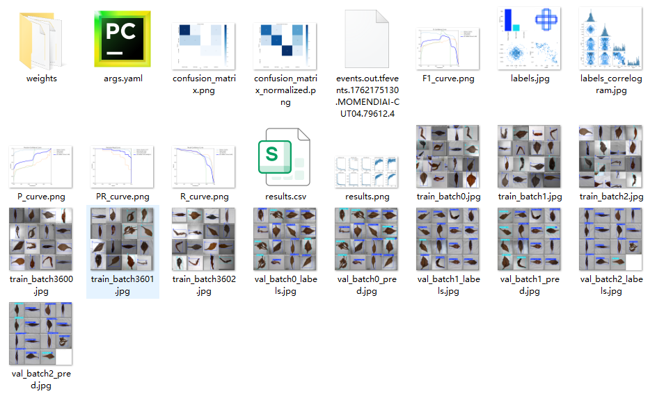 我们每次训练后,会在 run/train 文件夹下出现一系列的文件,如下图所示: