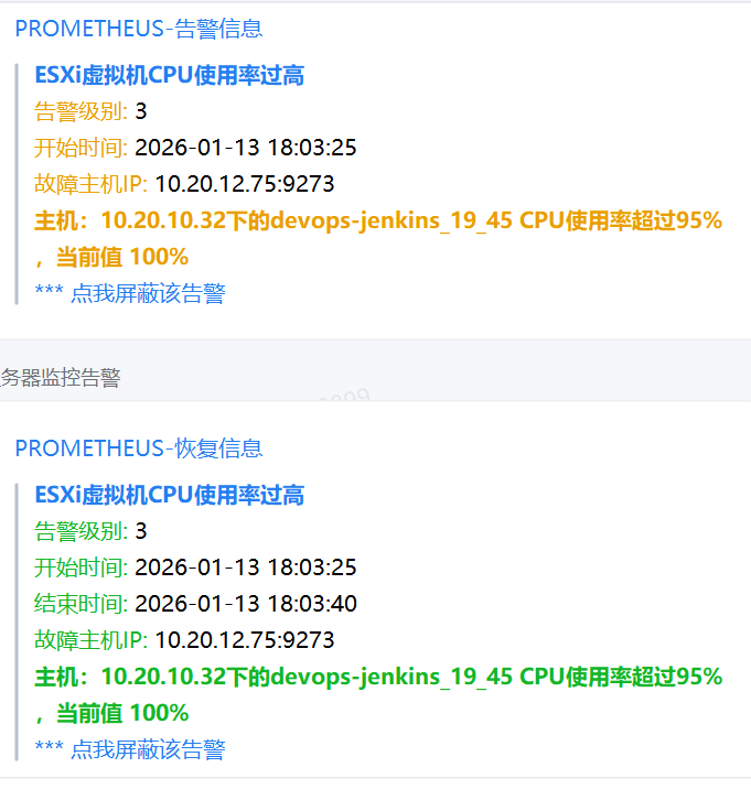 description: "主机:{{ $labels.host_name }}下的{{ $labels.vm_name }} CPU使用率超过95%,当前值 {{ $value }}%"