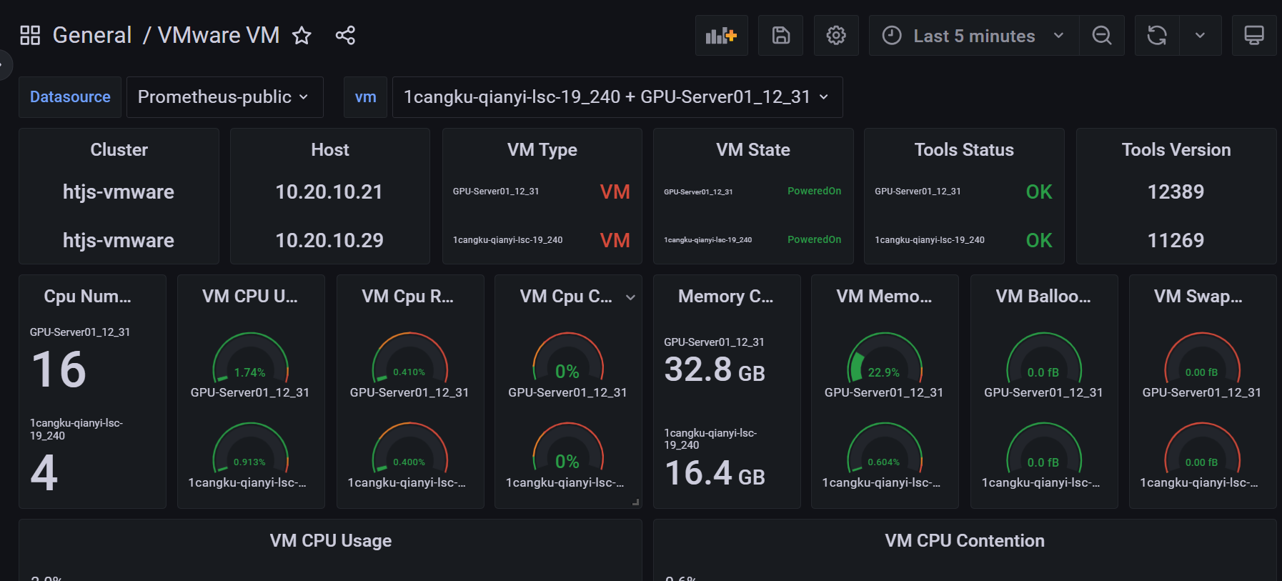 以下是项目上的dashboard,可根据情况导入vmware_exporter/dashboards at main · pryorda/vmware_exporter · GitHub