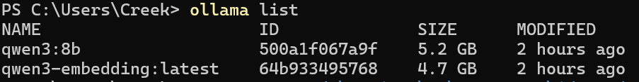 部署qwen3:8b 和 qwen3-embedding 即可(按个人喜好)