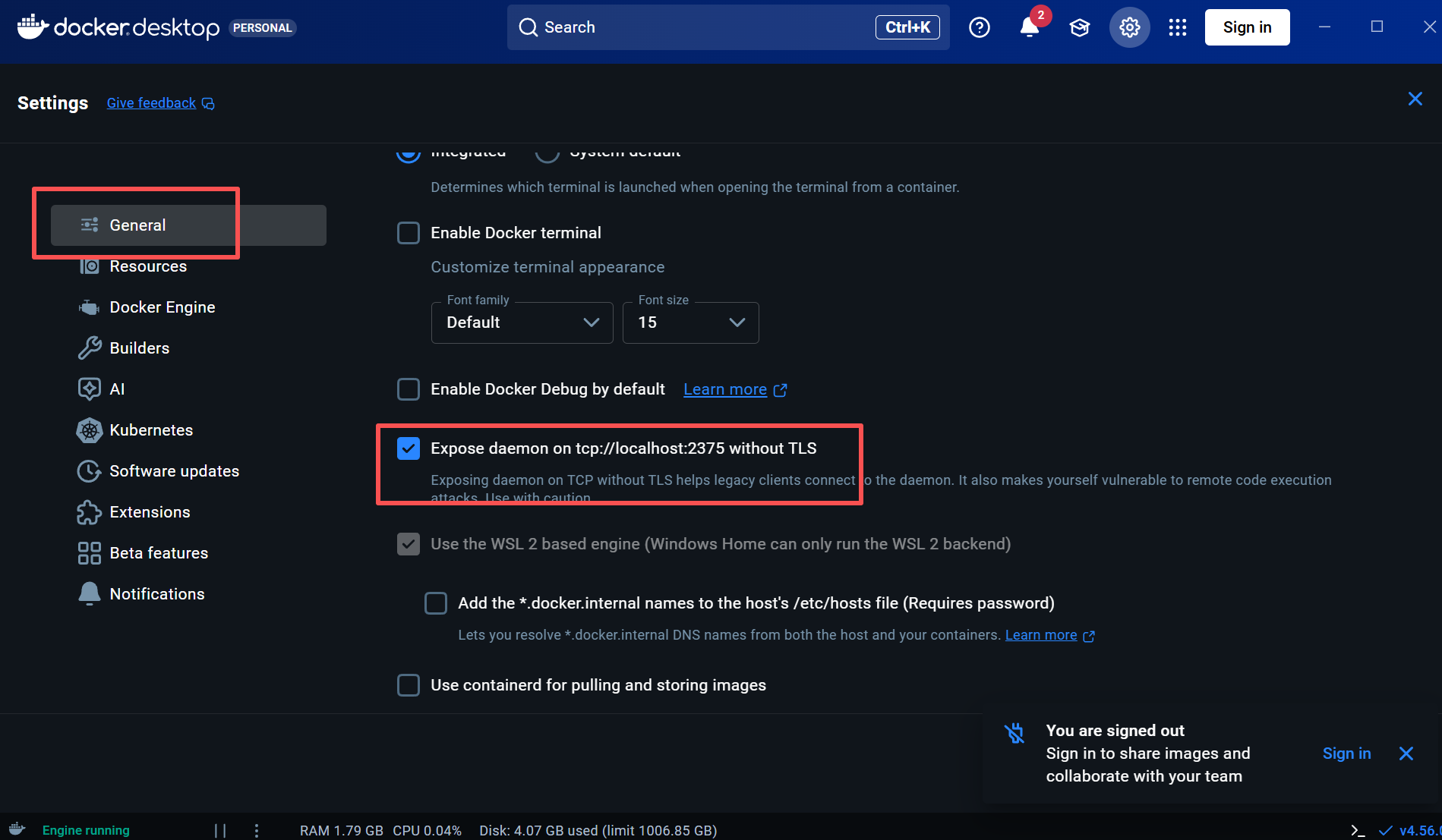 注意:Docker必须打开TCP ,如下图,默认是关闭的。