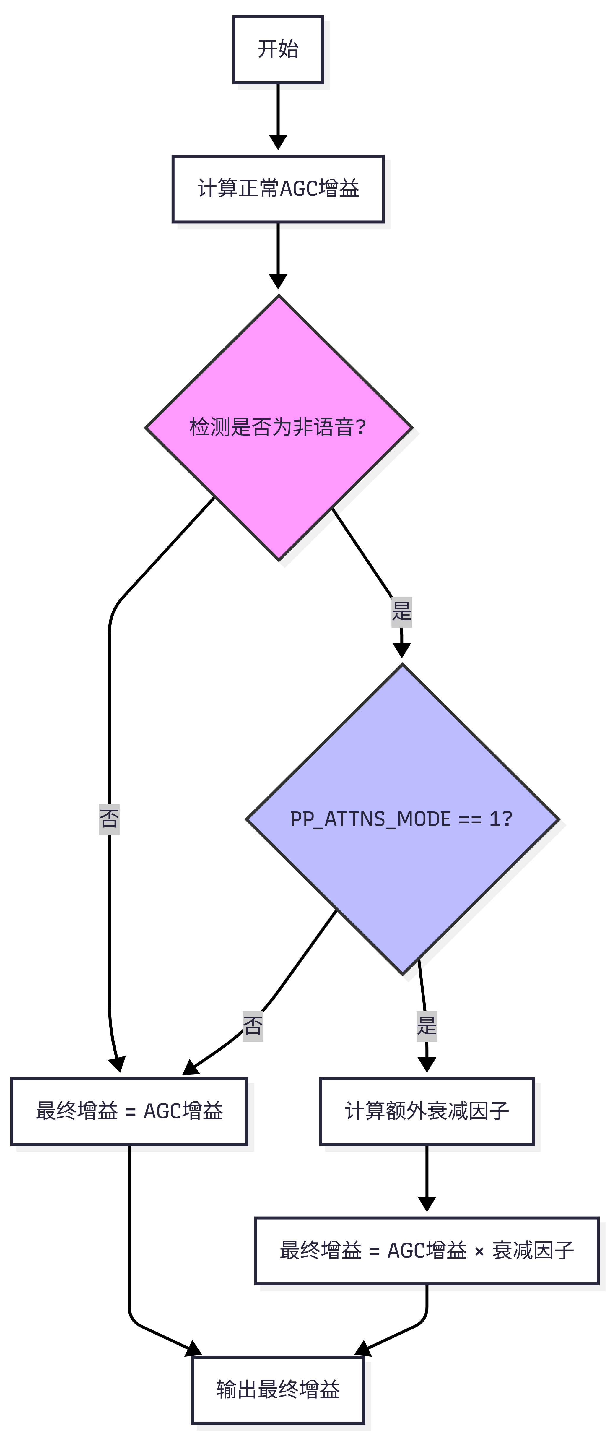 ATTNS (Attenuation of Noise during Silence 静默期间噪声衰减) 的出现,就是为了在 AGC 提高增益的同时,通过算法逻辑在静音期施加一个"反向力",压制被放大的噪声。在非语音期间(只有噪声,没有语音),额外降低AGC增益,减少输出噪声,提高安静时的用户体验;保持语音期间的正常增益,不影响语音质量。