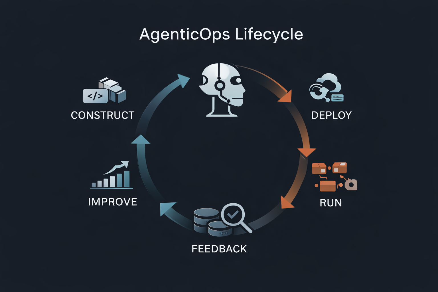 通过 AgenticOps,企业能够打破 AI 仅作为单一工具的局限,推动 AI 深入业务流程,实现高效协同与持续优化。AgenticOps 包含的核心流程包括智能体的构建、部署、运行、反馈和改进,这一周期性的闭环确保 AI 在实践中能够不断学习和提升,从而为企业创造持续的生产力。