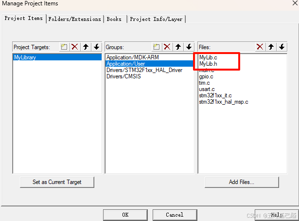 接着把库文件单独放在一个组内,其他文件夹屏蔽不编译以节省空间