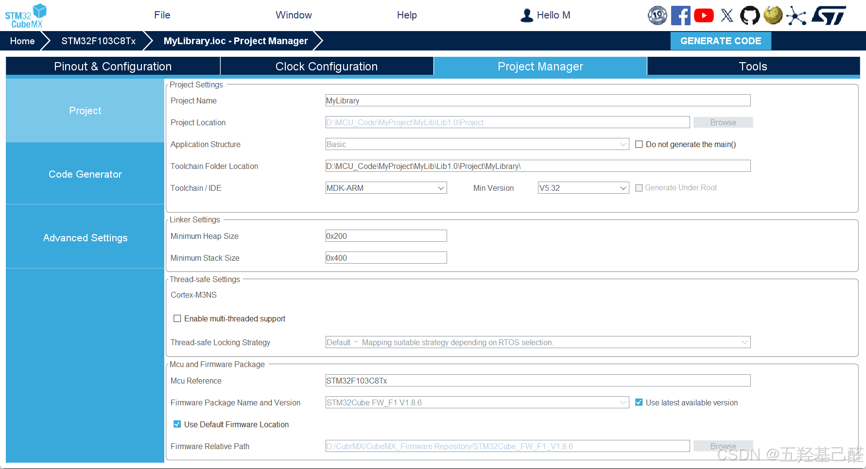 这里以STM32F103HAL库为例演示。首先创建一个标准HAL库工程: