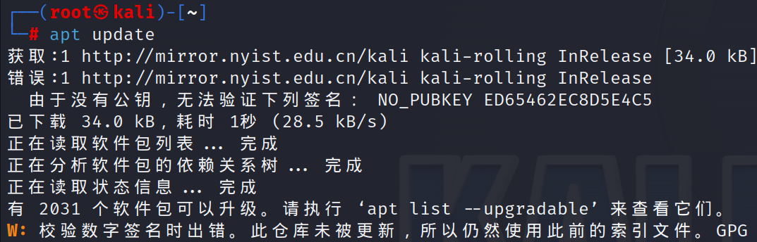 执行下面的命令下载并安装 Kali 官方仓库密钥: