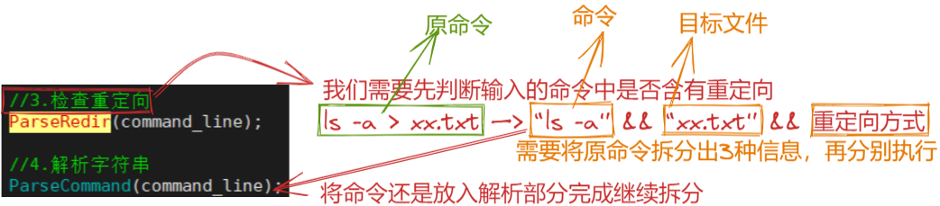 前面分析部分我们已经知道,经过ParseRedir函数的处理,我们就将重定向部分删除了,留下的就只有单纯的命令和文件名!