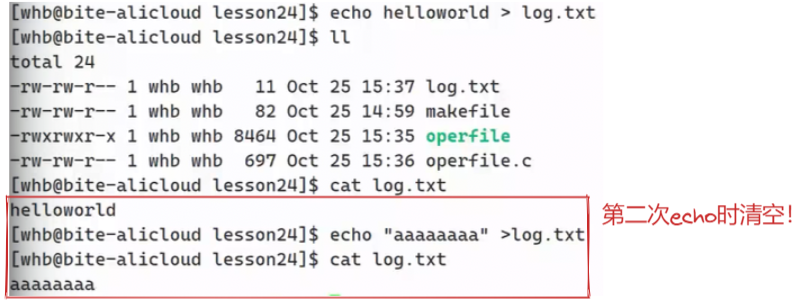 因为,echo重定向时,其本质也需要将文件打开,而打开的方式也是'w'打开,自然会将原来存在的内容清空!