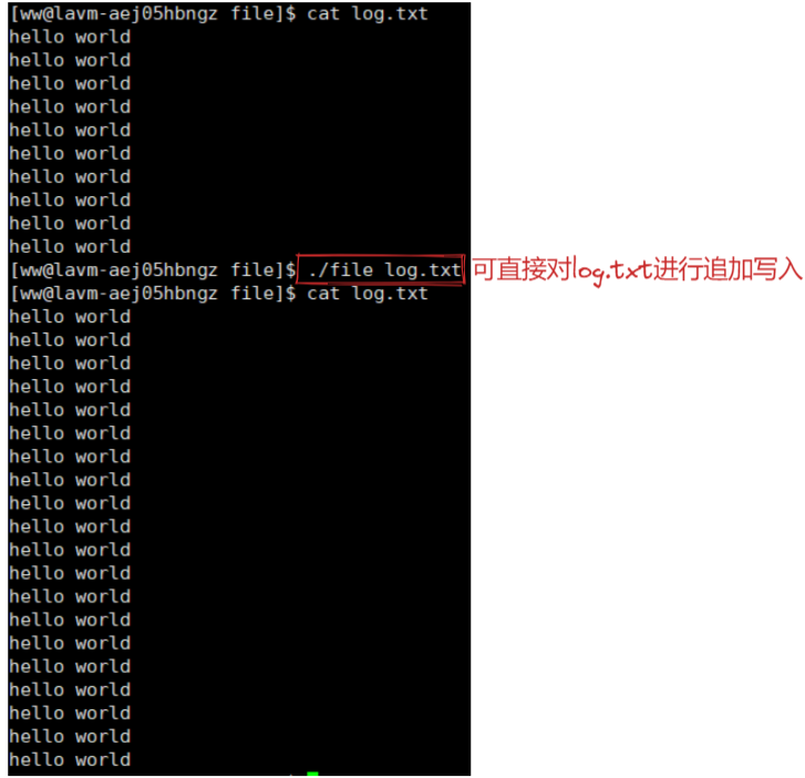 使用同样的原理,我们就可以完成追加重定向: