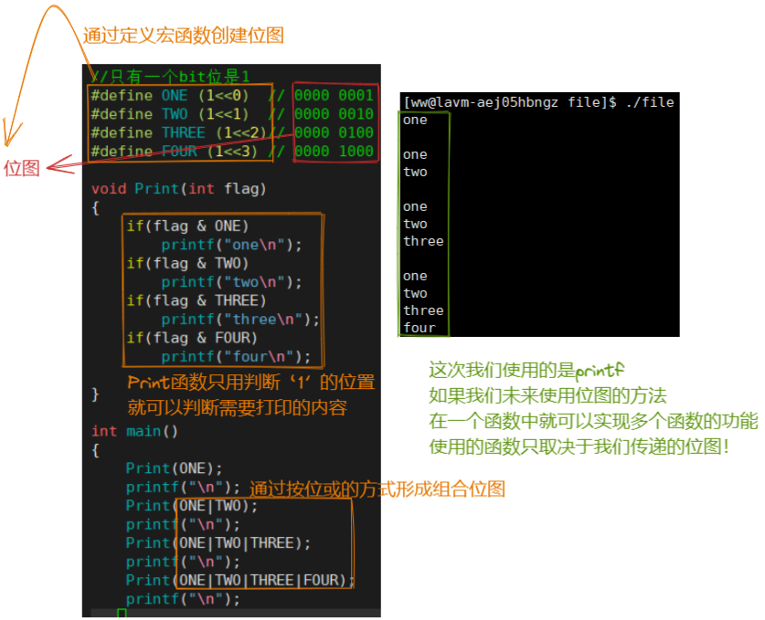由上图可知,我们传递给Print函数不同的数字,就可以实现不同的函数,open( )的实现原理就与其类似,我只需传入不同的打开模式,就可以实现不同的函数功能!而再加上 ' | ' ' & ' 的操做,我们就可以在一条语句中同时实现两个函数功能!也就是同时实现 读写 操做!