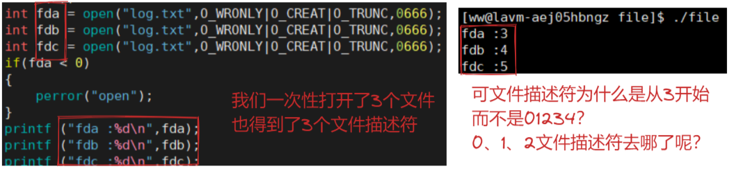 为什么返回值为 3 呢?这个问题我们放在后面再谈,我们现在先了解这个返回值(文件描述符)究竟有什么作用!