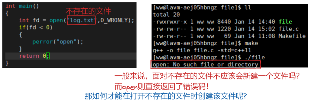 1.打开不存在的文件