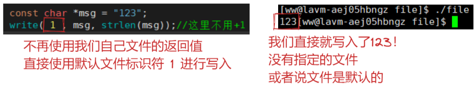 既然0 1 2是被默认打开的,那么我在使用write时,是不是可以直接向文件标识符为 1 中直接写入?它也就可以直接在我们的显示器上输出