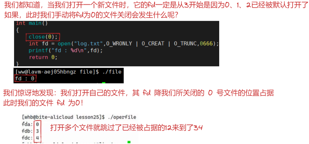 所以,从这我们就不难看出,OS对打开的新文件分配文件描述符的规则就是:分配文件描述表数组中,会优先分配最小的&&没有被使用的fd!