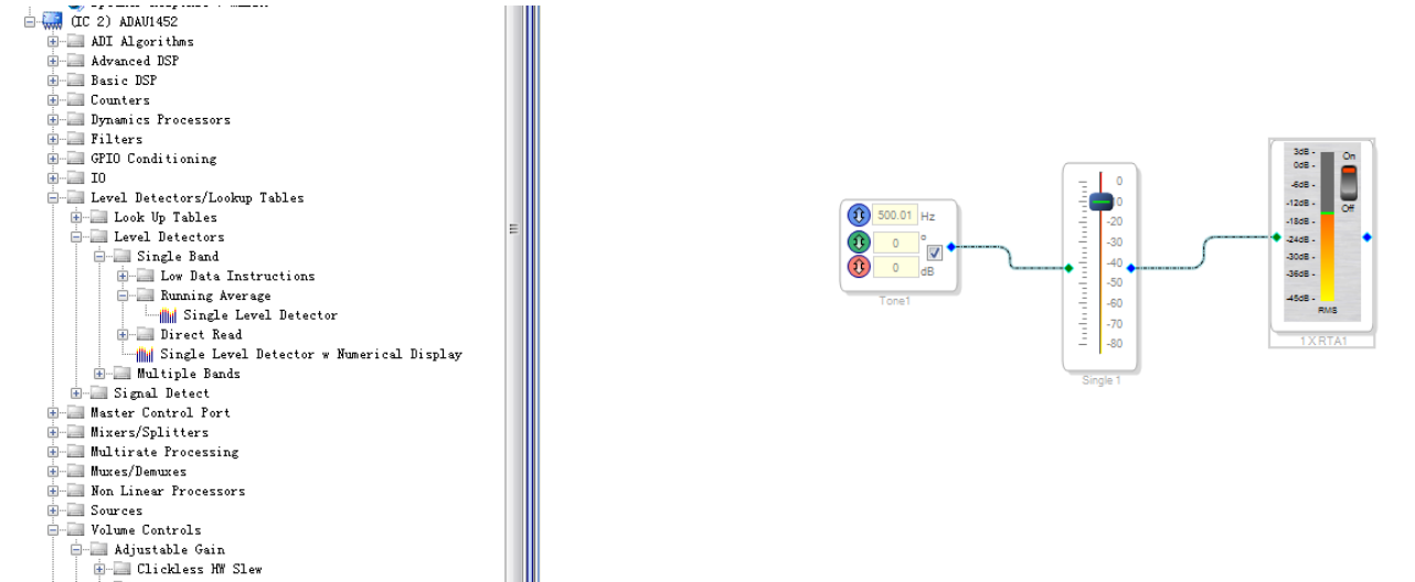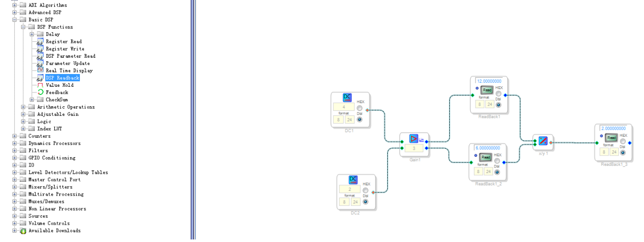 ADAU1452 的进阶例程 4:Linear Gain 线性增益和 Divide 除法和 DSP Readback 模块的组合使用