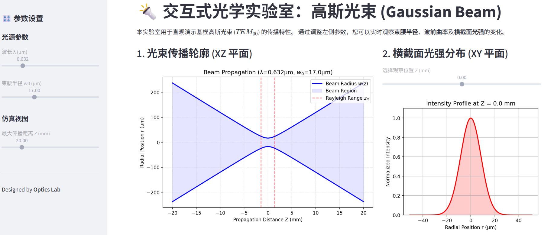 可以查看我生成的高斯光束的案例Gaussian Beam APP,建议全局运行。