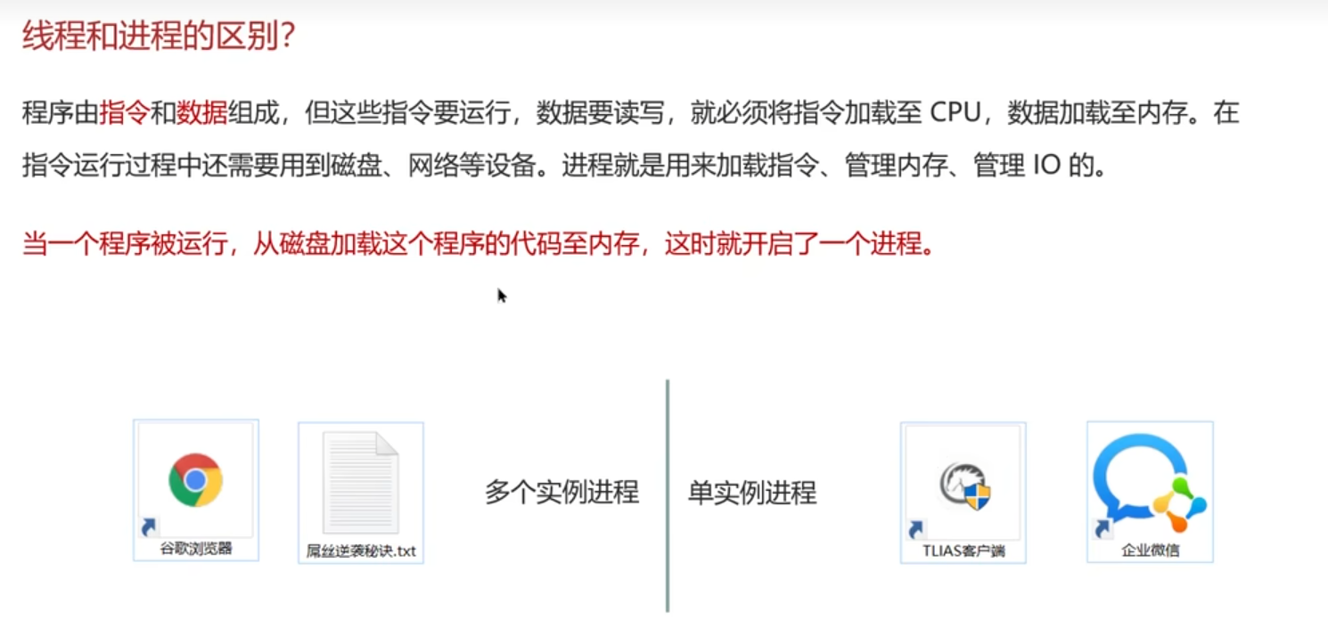 当一个程序被运行,从磁盘加载这个程序的代码至内存,这时就开启了一个进程。