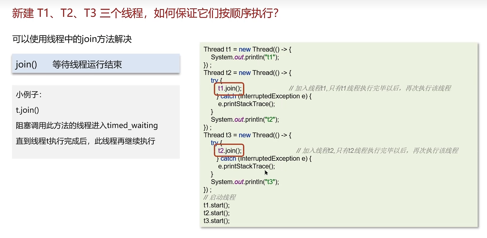 新建T1、T2、T3三个线程,如何保证它们按顺序执行