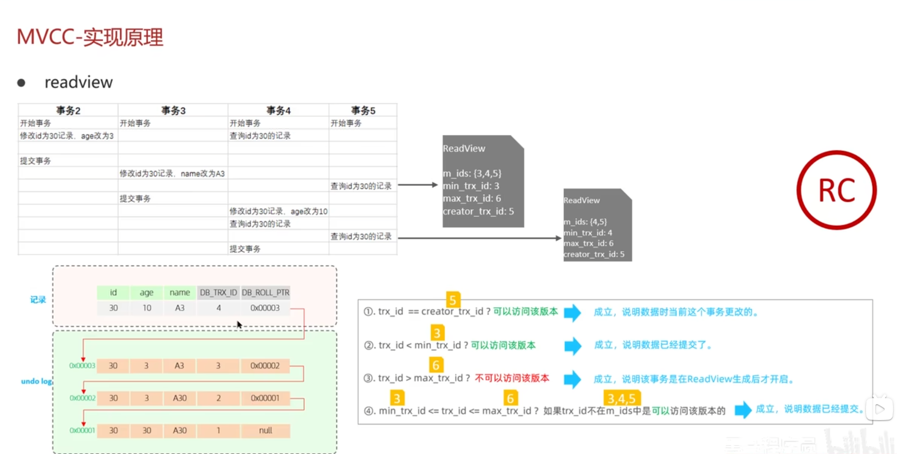 RC是读提交、每次查询都新建一个readreview;