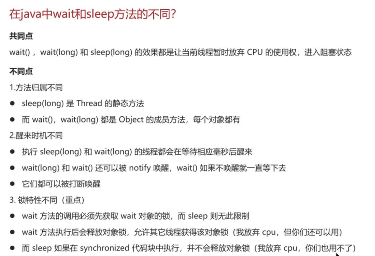 wait和sleep方法的不同