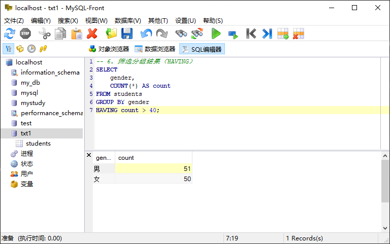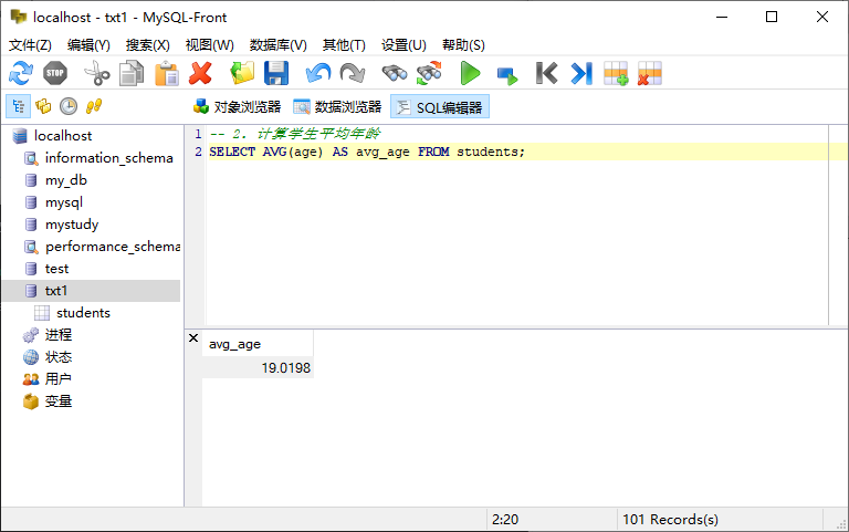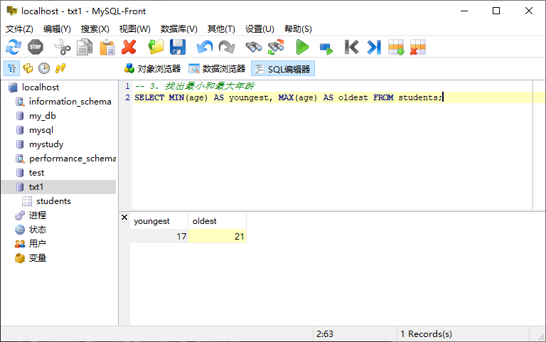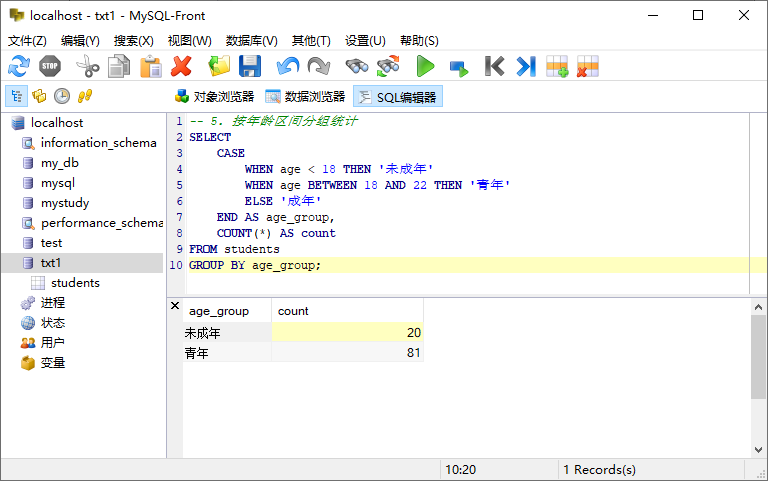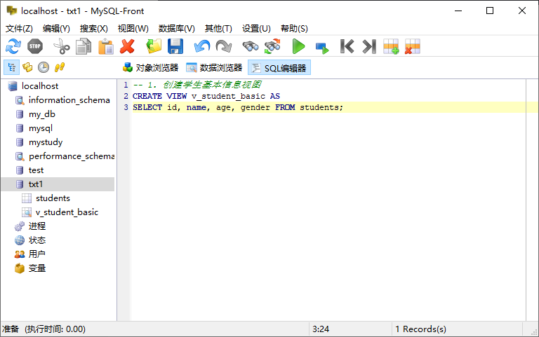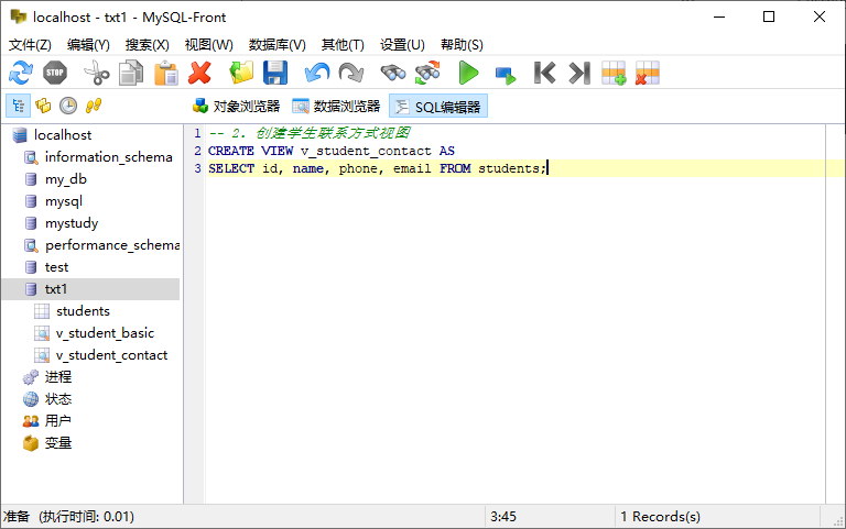#创建一个名为txt1的数据库(txt1这个数据库原本存在不会报错,不存在创建之)