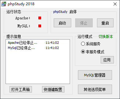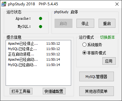 小皮这个工具能帮助你一键快速启动MYSQL服务,