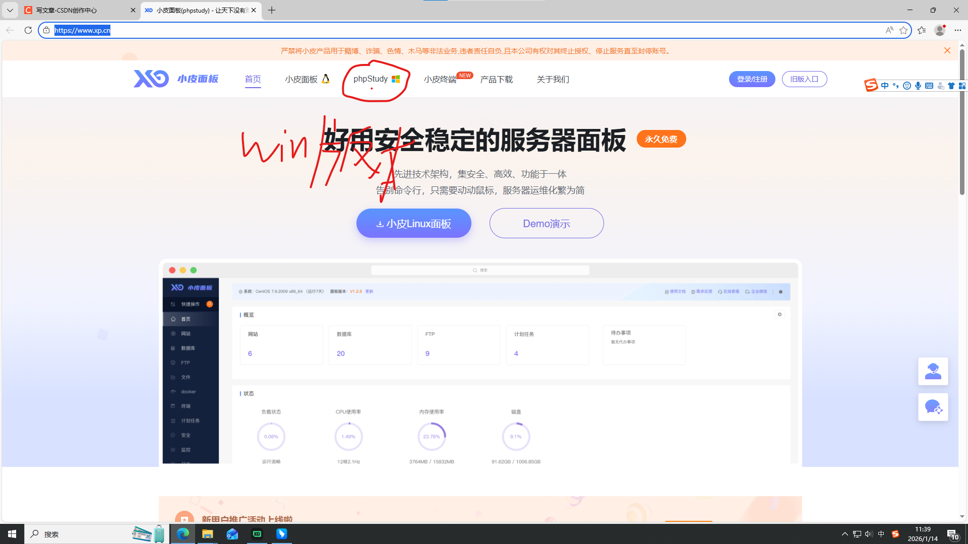 打开网站下方网站下载小皮面板并下载:小皮面板(phpstudy) - 让天下没有难配的服务器环境!