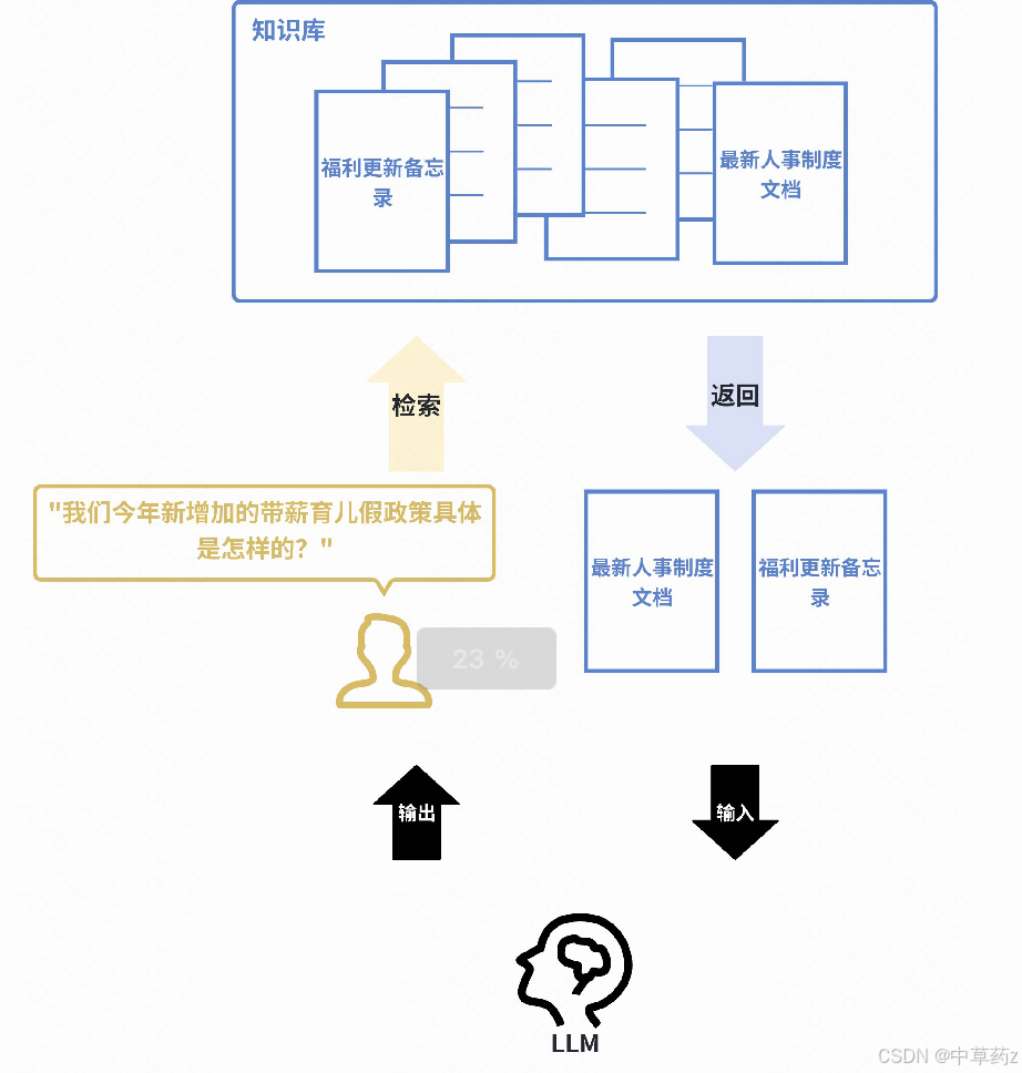 例如:一家公司的内部客服机器人接到员工提问:"我们今年新增加的带薪育儿假政策具体是怎样的?" 系统会首先使用嵌入模型在公司的最新人事制度文档、福利更新备忘录等资料中进行语义搜索,找到关于 "今年育儿假规定" 的具体条款,然后将这些【条款】和【问题】一起提交给 LLM,LLM 便能生成一个准确、具体的摘要回答,而非仅凭其内部训练数据可能产生的过时或泛泛的答案。