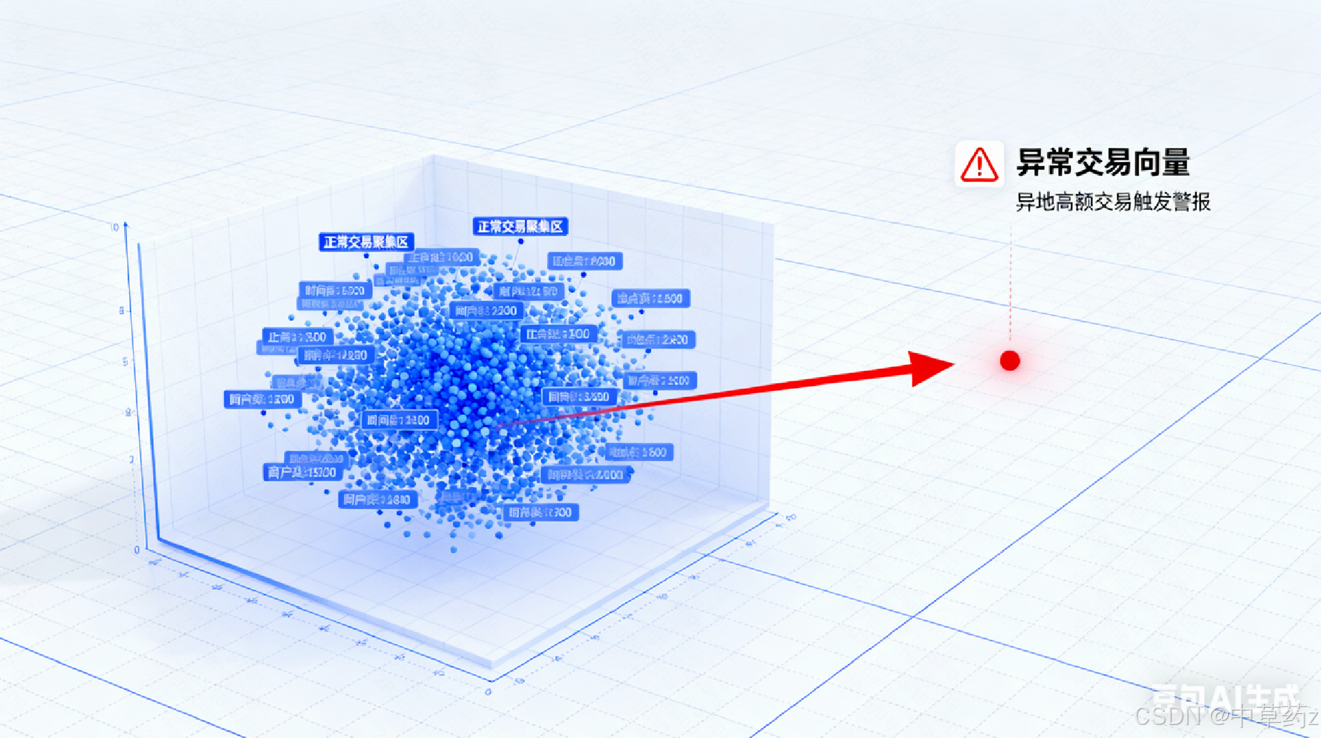 例如:⼀个信⽤卡交易反欺诈系统,通过学习海量正常交易记录(如⾦额、地点、时间、商⼾类型等特征的向量)形成了"正常交易"的向量聚集区。当⼀笔新的交易发⽣时,系统将其转换为向量。如 果该向量出现在"正常聚集区"之外(例如,⼀笔发⽣在通常消费地之外的⾼额交易),系统则会将 其标记为潜在的欺诈交易并进⾏警报