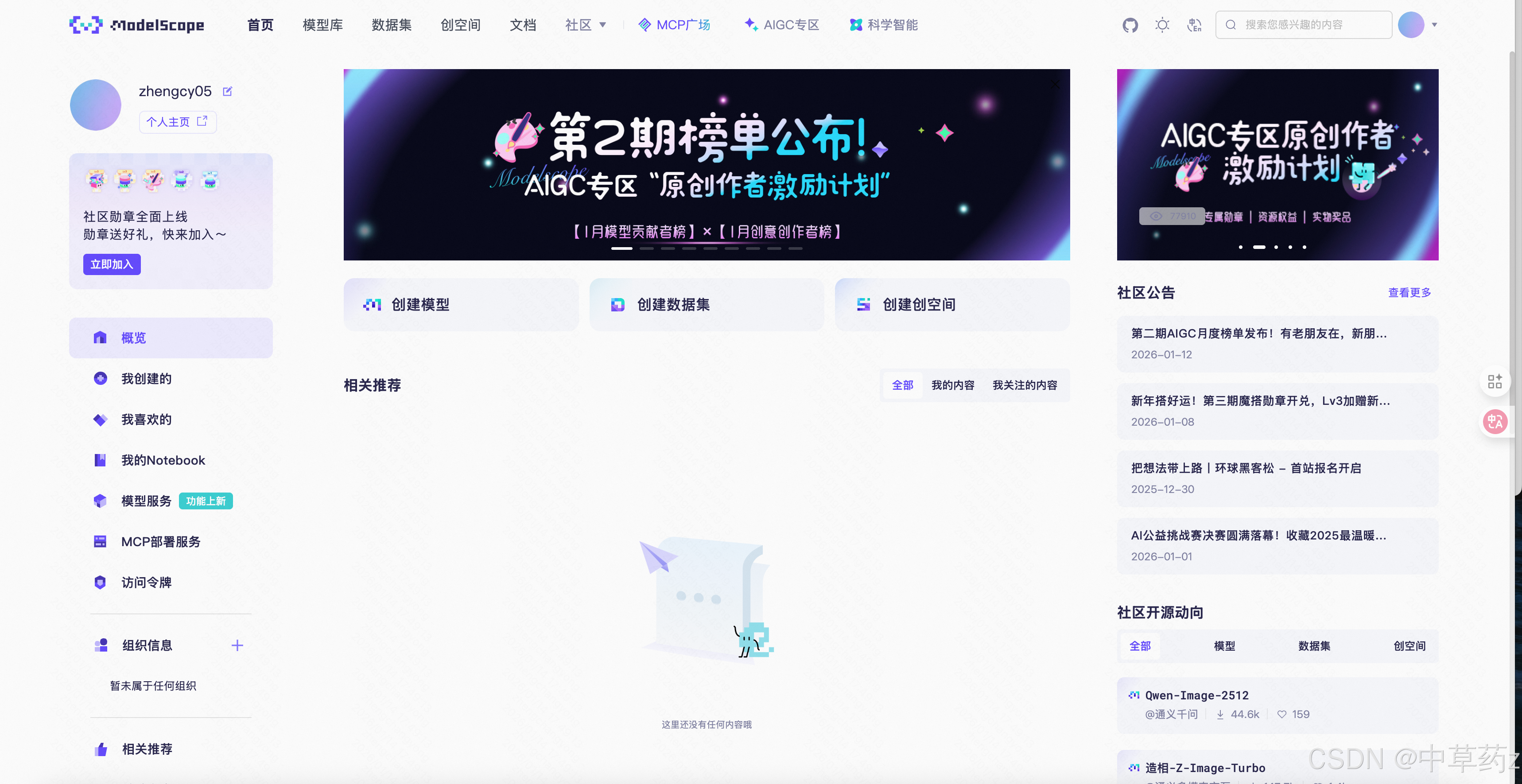魔塔社区(官方名称ModelScope ,又称魔搭社区)是由阿里巴巴达摩院 联合中国计算机学会开源发展委员会等机构发起的模型即服务(MaaS) 开源共享平台,被誉为中国版 Hugging Face ,致力于 "开源、开放、共创 ",降低 AI 开发门槛,加速 AI 技术落地应用。官网地址:https://www.modelscope.cn/home