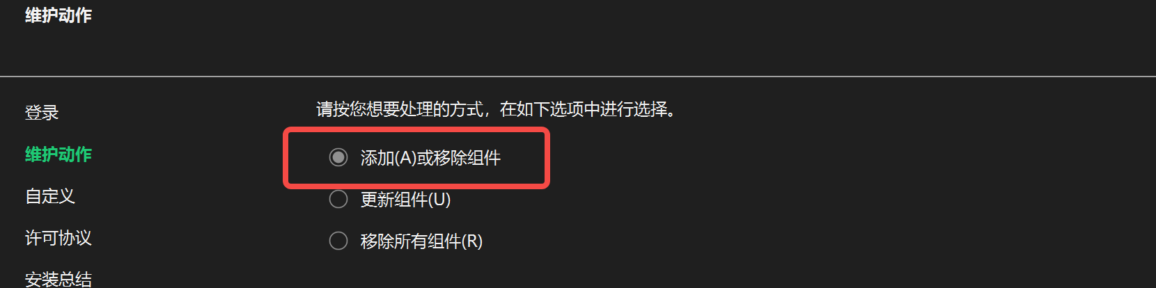 - 登录后选择**"添加(A)或移除组件"**