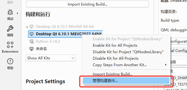 - 右键MSVC点击"管理构建套件"