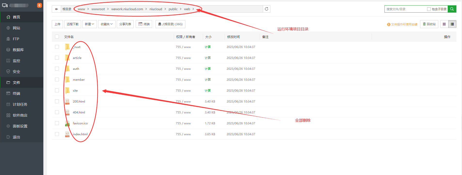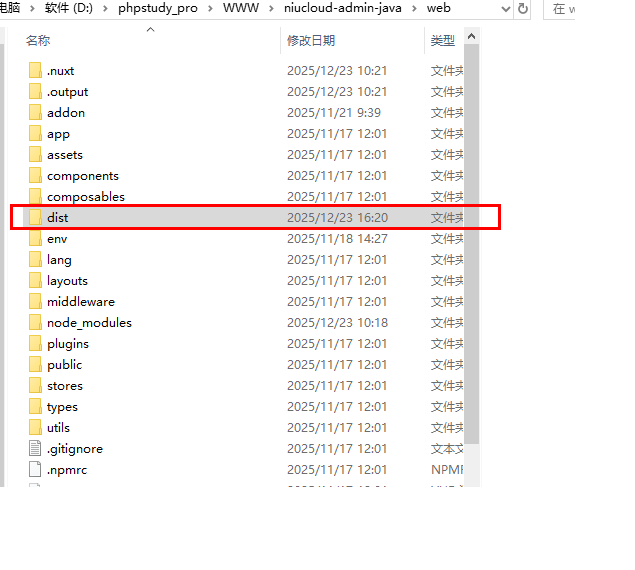 将 dist 下的所有文件压缩,运行环境(宝塔)中的 niucloud/public/web 中所有文件全部清除掉