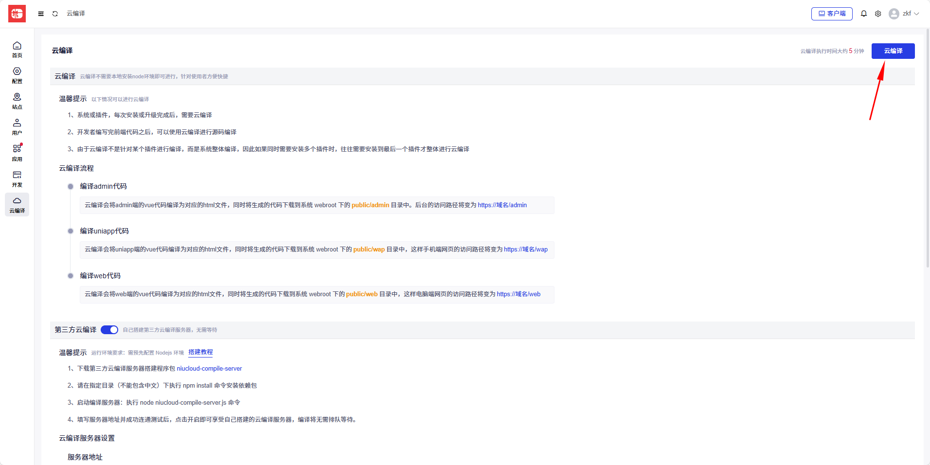 云编译:点击云编译按钮,等待编译完成即可